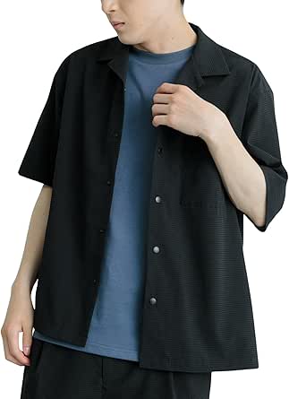 [アーバンリサーチ アイテムズ] ワイシャツ 『セットアップ対応』シアサッカースナップOPENカラー半袖シャツ メンズ IT45-13B015 BLK M