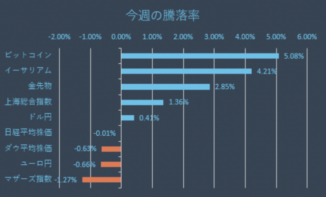 (今週の騰落率は、先週の終値、今週の終値を用いて計算。月初来、年初来についても前の月、年の終値で計算)