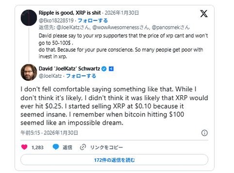 リップル社の最高技術責任者であるデビッド・シュワルツ氏は、XRPトークンが最終的に50ドルから100ドルに達する可能性があるという長年の予想に大きな疑問を投げかけている。