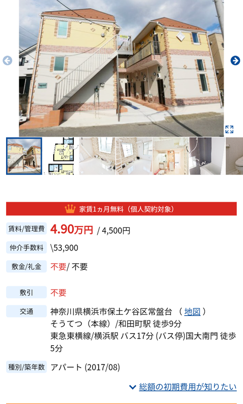 横浜の賃貸相場を知らないけれど、敷礼なしの家具付きってのは出張とかにいいなと。