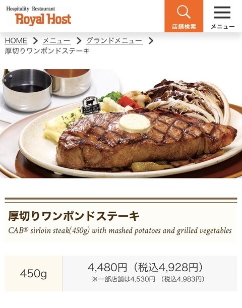 参考ソース:ロイヤルホスト、ステーキなど値上げ 原材料高で