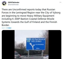 The unconfirmed footage, shared online on Monday, showed at least two Russian military vehicles moving towards the border with Finland.