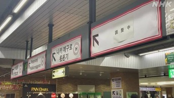 JR東日本は、東京 渋谷区の恵比寿駅構内に、東京メトロ 日比谷線に乗り換える人に向けてロシア語で「中目黒」や「六本木」と書かれた案内板を設置していますが、今月7日から紙で覆い隠していました。