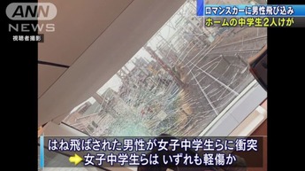 警察によりますと、7日午前9時ごろ、座間市の小田急線相武台前駅で20代から30代とみられる男性がホームから新宿行きのロマンスカーに飛び込み、男性の体ははね飛ばされてホームのベンチに座っていた女子中学生2人にぶつかったということです。中学生2人は救急搬送されましたが、いずれもけがは軽いとみられています。