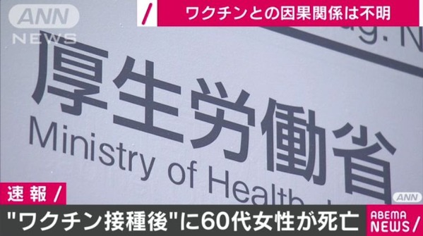 厚生労働省は、先月26日に新型コロナウイルスのワクチンを接種した60代の女性が今月1日に死亡したと発表しました。死因はくも膜下出血と推定され、ワクチンとの因果関係は分かっていないということです。女性に基礎疾患やアレルギー歴はありませんでした。