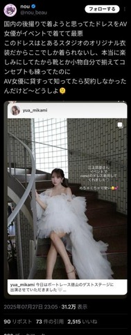 タレントの三上悠亜さんがウェディングドレス姿をSNSで披露し、ネット上で大きな反響を呼びました。