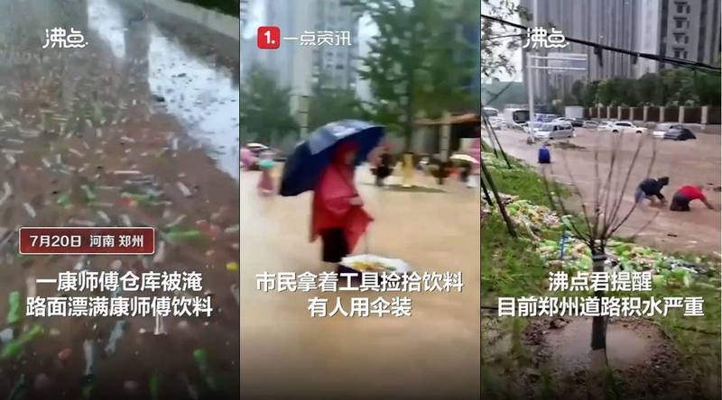 画像動画Breaking News:中国の河南省では、大雨の影響で市内に深刻な洪水が発生し、死傷者が出ています。中国日報やネット上の情報によると、鄭州の馬寨鎮にある倉庫が倒壊し、30万本の飲料ボトル等が流れてきたがそれらを拾う人々もいるようだ。自由時報 2021/7/22 ソース中国語 『河南暴雨傳康師傅倉庫坍塌 民眾不顧水災瘋搶30萬瓶飲料』