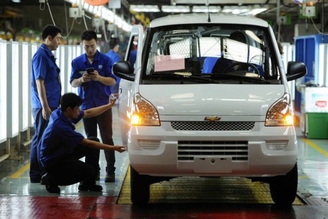 青島の自動車工場で製造作業に取り組む作業員(Getty Images)外国企業の撤退が加速化する中国では、政府がエコカー、銀行、証券、保険など12の分野で外資への規制緩和を検討している。