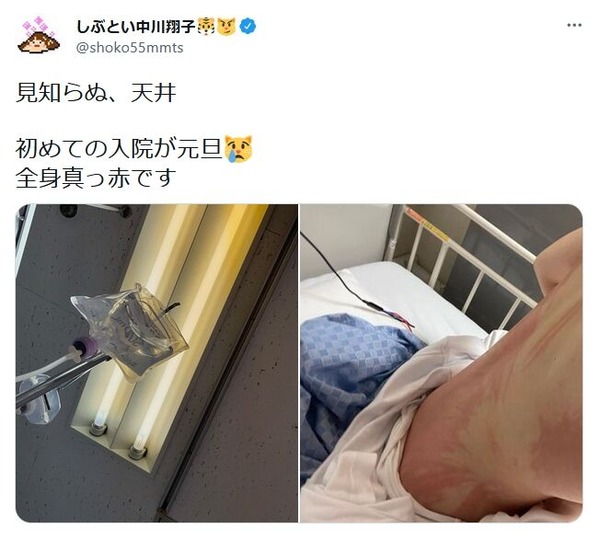 中川翔子が元日に入院「アナフィラキシーで、肝臓機能低下?もあるからと」