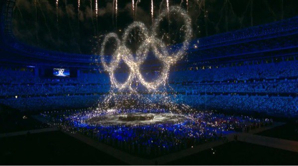 光の粒によりオリンピックリングスが
