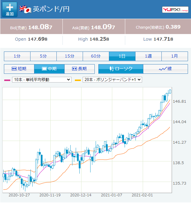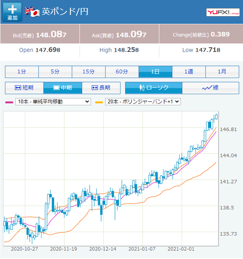 ポンドの日足は右肩上がりで僕も利益が出ているお。
