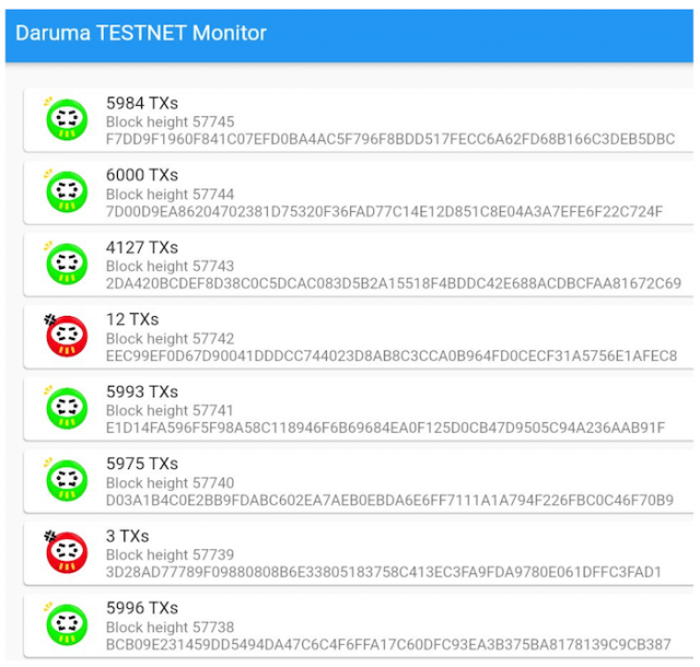 1ブロックの生成時間が30秒で、ブロック当たりのトランザクション数が最大6000トランザクションであるテストネットに対し、負荷テスト中はそれを上回るトランザクションを送信し続けることにも成功。平均秒間処理性能は134.2TPS(Transaction Per Second:1秒間の取引処理数)だった。