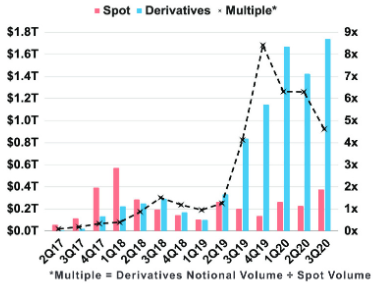 デリバティブの想定取引高は、2017年2Qから2020年の3Qまでに60億ドルから1.7兆ドルにまで爆発的に増加している。