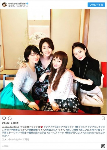 タレントの神田うのが22日、自身のInstagramで、女優の伊東美咲、菅野美穂らと写る、豪華な“ママ友会”ショットを公開し、反響を呼んでいる。