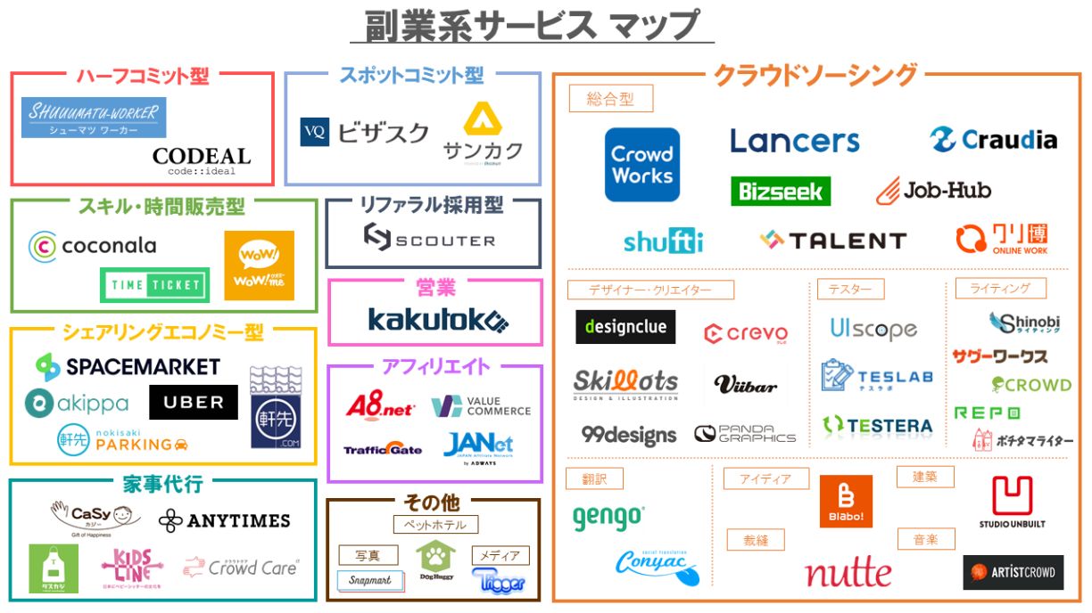 副業系サービスをまとめたカオスマップ(2017年版)が公開