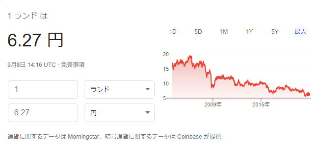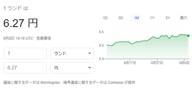 ちなみにランド円も今日は円高に振れちゃってるお。
