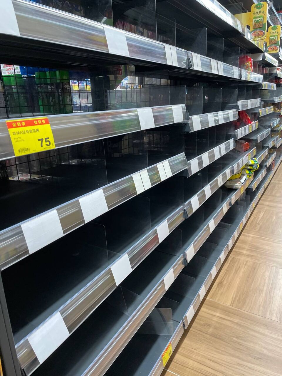 どこの国もスーパーで爆買いが起きるのは同じなんだなぁって。