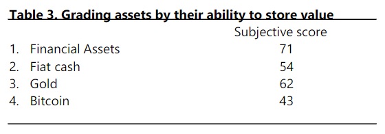 ジョーンズ氏も複数の手段を検討している。株式、債券、現金、金、そしてビットコインだ。彼はこれらを信頼性、流動性、購買力、可搬性といった基準でランク付けする。そして、まさにその本質的な性質から、ビットコインは基本的にすべての手段のなかで、価値の保存手段には最も望ましくないと結論づけた。