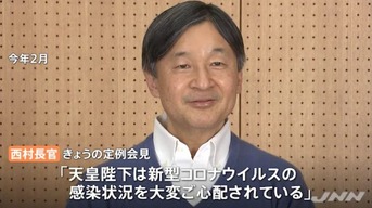 西村長官はきょう午後の定例会見で、「天皇陛下は現下の新型コロナウイルス感染症の感染状況を大変ご心配されておられます」「国民の間に不安の声がある中で、ご自身が名誉総裁をお務めになるオリンピック・パラリンピックの開催が感染拡大に繋がらないか、ご懸念されている、心配であると拝察いたします」と述べました。