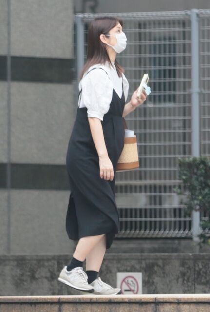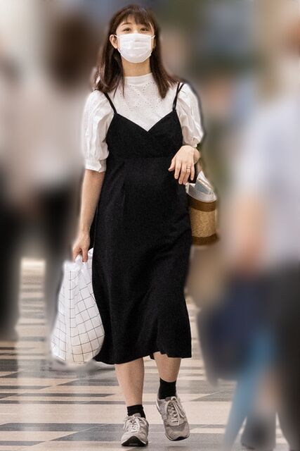 ふっくら膨らんだお腹が目立つ臨月の小倉優子 (女性セブン)