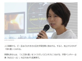 岡島礼奈さんは、「人工流れ星」をつくりだしてビジネスにつなげる、宇宙ベンチャー企業「ALE(エール)」を立ちあげた起業家だ。