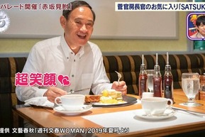 2019年10月19日放送の「出没!アド街ック天国」(テレビ東京系)では、東京・赤坂見附が特集された。その中で、ホテルニューオータニ内にあるレストラン「SATSUKI」が取り上げられ、常連客の1人として菅氏が紹介された。大の甘党であるという菅氏は、「ニューオータニ特製パンケーキ」(税込3080円)をよく頼むという。