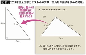 2021年、算数教育界に激震が走りました。「全国学力・学習状況調査(全国学力テスト)小学校6年算数」で出題された三角形の面積を求める問題(図表1参照)の正答率がわずか「55.4%」という低さだったからです。