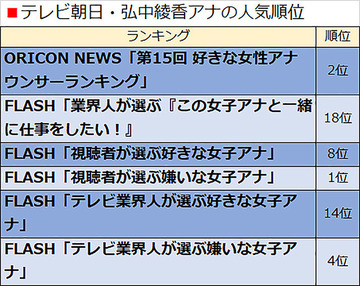 「週刊新潮」も5月16号に「テレ朝『小川彩佳』『宇賀なつみ』に続くエースアナ独立計画」の記事を掲載。弘中アナがフリーを視野に入れていると報じた。