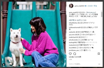 元モーニング娘。の後藤真希さん(32)が、ソフトバンクのCMでお馴染みのお父さん犬と「公園デート」している写真をインスタグラムで公開した。
