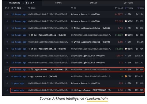 仮想通貨の大口投資家(クジラ)が、クリプトパンクスのNFTを4000イーサリアム(ETH)で売却した。この時点での評価額は600万ドルを超えていた。