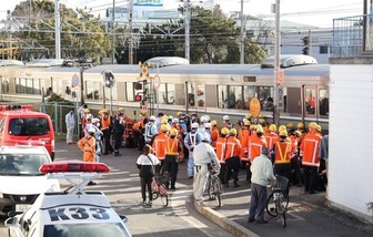 5日午前10時すぎ、神戸市須磨区のJR神戸線須磨-須磨海浜公園間の踏切内に女性が立ち入るトラブルがあり、新快速電車が緊急停車した。兵庫県警須磨署などによると、女性は踏切内にとどまって電車をかわした後、進入した方向に立ち去ったとみられ、同署が監視カメラの映像などを基に女性の特定を進める。
