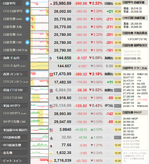 2022/9/28 11:23〔東京株式〕反落=欧米株安で心理悪化(28日前場)「米アップルが新型iPhone(アイフォーン)の増産計画を断念した」と一部で報じられると下げが加速。2022/9/28 11:37