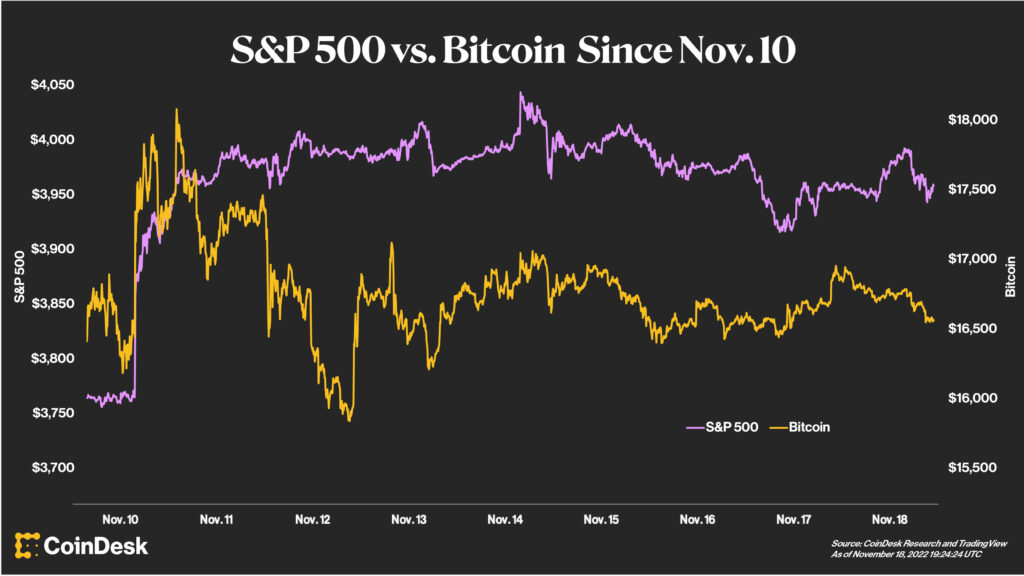 それを受けてS&P 500は、翌日までに3760ドルから4000ドルまで上昇。現在は3950ドル付近で推移している。ビットコイン(BTC)も同様の値動きを見せ、10日の1万6000ドルから、11日までには1万8000ドルを超えた。違いがあるとしたら、ビットコイン価格は現在、1万6600ドル付近となっていることだ。