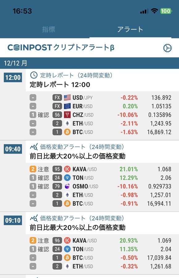 暗号資産投資家向け「CoinPostアプリ」のクリプトアラート機能に、ドル円などのFX/為替情報と価格変動率10%以上の仮想通貨情報を追加しました。