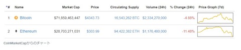 ビットコインの価格は、嵐をより良く暗号化したが、それでも5%のヒットを記録した。これは、ビットコイン価格が 9月2日に5,000ドルに達したときに始まった売りを強化した。その点から、ビットコイン価格は700ドル近くまで下落した。現在、ビットコインの価格は4,344ドルで、719億ドルの時価総額