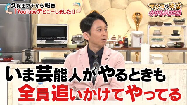 トーク中、アシスタントを務めるテレビ朝日・久保田直子アナウンサー(38)がYouTubeデビューしたことが話題に。