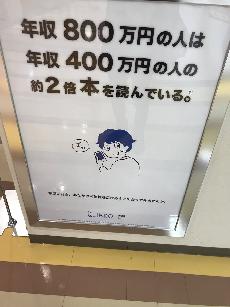 本屋さん「年収800万円の人は年収400万円の人の2倍本を読んでいます」