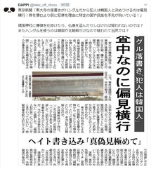 【東京新聞朝刊】ハングル落書き「犯人は韓国人」/捜査中なのに偏見横行(池田悌一)