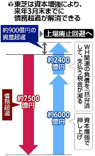 経営再建中の東芝は19日、取締役会を開き、約6000億円の資本増強を決議したと発表した。
