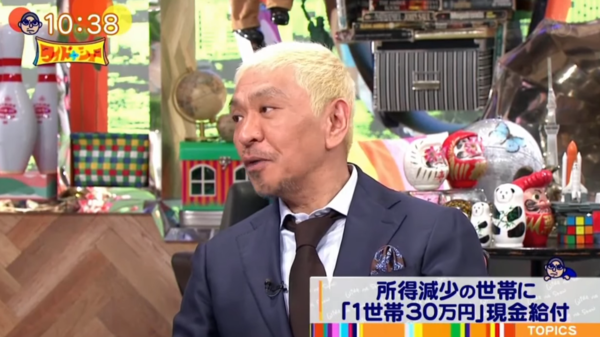 ダウンタウンの松本人志(56)が5日放送のフジテレビ「ワイドナショー」(前10・00)で、新型コロナウイルスよる所得減少の世帯に1世帯30万円を現金給付する政府の支援策に疑問を呈した。