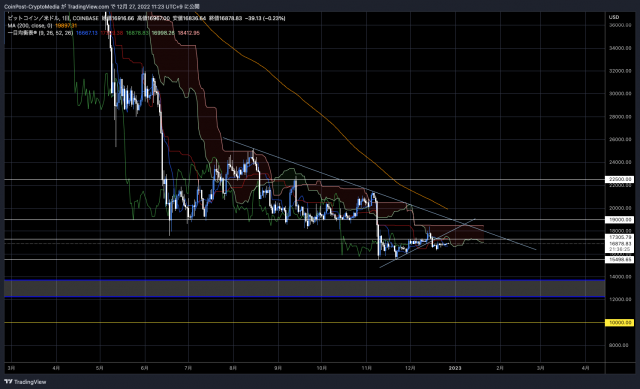 弱気トレンドの続く暗号資産相場がどこで下げ止まるかは、目下の焦点と言える。