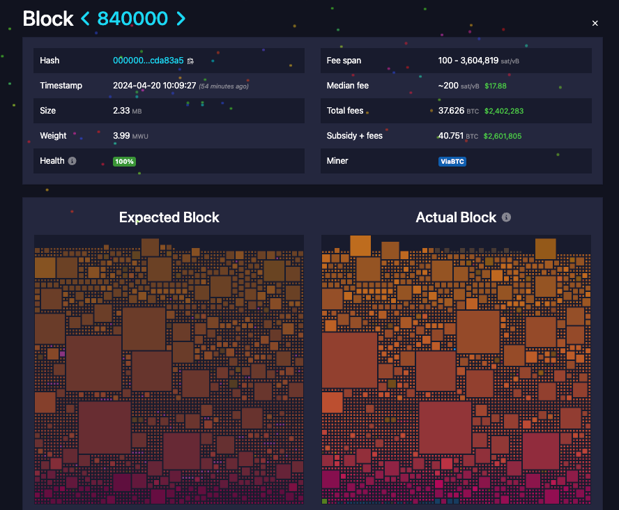 ビットコインでのルーンズのローンチは、4回目のビットコイン半減期と同時に行われた。この結果、ビットコインブロックチェーン上のトランザクション量が急増し、ビットコイン(BTC)のマイニング収益は初めて1億ドルを超え、1日あたりの収益は1億770万ドルという過去最高を記録した。