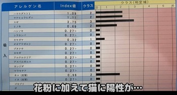 近頃「鼻づまりやくしゃみ、目のかゆみ」などの症状があり、身体に異変があったという下僕は皮膚科に訪れ、アレルギー検査をしてきたとのこと。花粉症持ちということもあり、始めはそのせいだと思っていたようですが、花粉が飛ぶような季節でもなく、原因がわからなかったそうです。