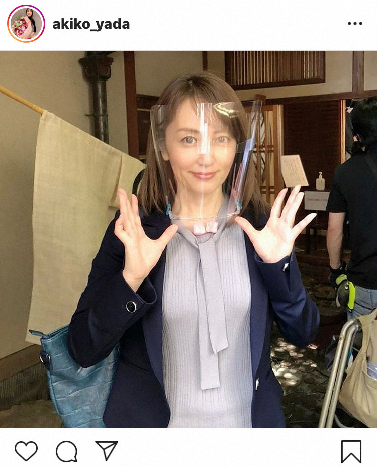 フェースガードは着用中も顔に当たらない力作で、「すごい!!ありがたいです!!これで、メイクも崩れません!優しい~」と喜び、ハッシュタグで「#ドラマ #ロケ #撮影 #撮影開始 #コロナ対策 #慎重に」とつづった。
