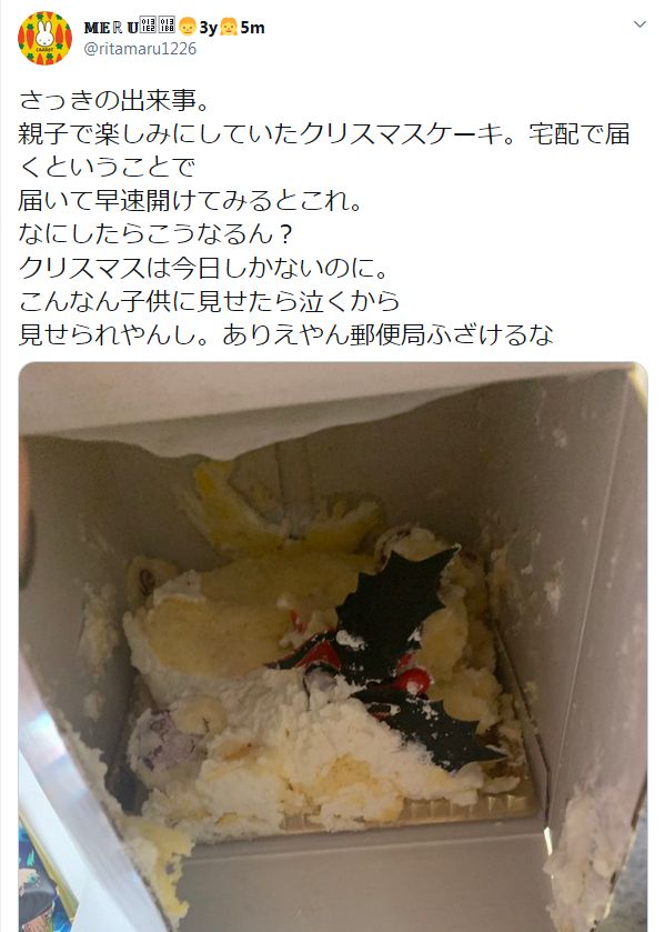 親子で楽しみにしていたクリスマスケーキ。宅配で届くということで