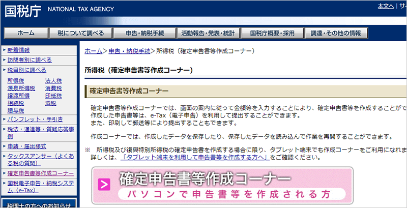 国税庁HP、所得税(確定申告書等作成コーナー)や最寄りの税務署で相談しながら作成すればOKです。