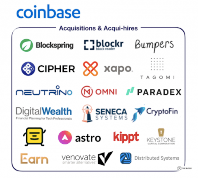 コインベースは米国最大手の取引所関連業者としてこれまで複数の買収案件を行ってきた。大手カストディ企業Xapoの2019年の買収では、5500万ドルで買収し、当時Xapo管理下の51万4000BTCはコインベースの管轄下で保管対象となっている。