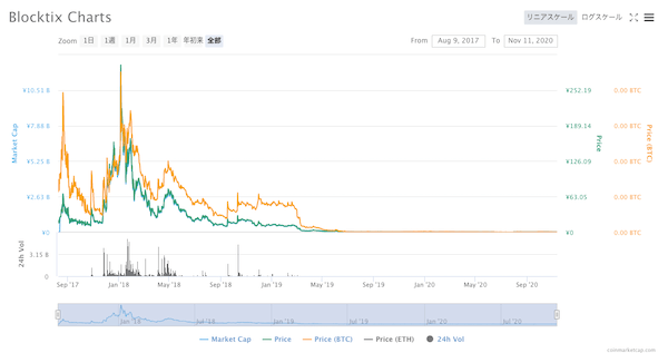 例えば、Blocktix(TIX)はイベントのチケットをやり取りできるサービスだが、CoinMarketCapのデータによるとローンチ時価格からのROI(投資収益率)は-98%。(300円→0.2円)に。