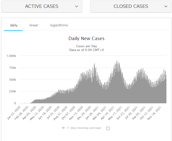 2chだとアメリカが感染しすぎという話題が出ているけれど、worldmetersの感染者数グラフを見ると山を越えて下り坂に入ったように見えるお。