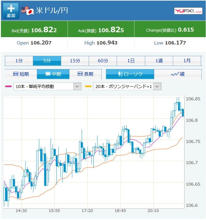 米雇用統計前、ドル円は徐々に円安に 106円台後半